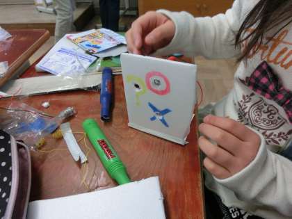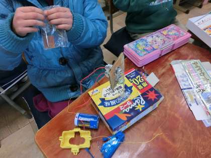 今日は理科で豆電球を使っておもちゃ作りをしました。