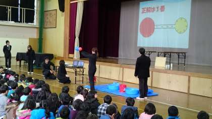 6日(金)は高学年の先生による桂東タイムです。今日は「サイエンス・マジック・ショー」でした。
