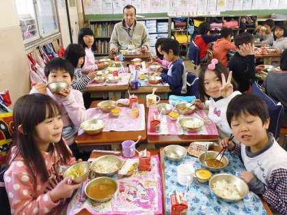 先週の給食週間に,いつもは一緒に給食を食べることのない先生と一緒に給食を食べました。みんなとてもうれしそうに,お話しながら給食を楽しみました。