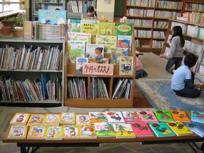 今日の中間休みから3日間,新しく図書室に入った図書のおひろめをしています。図書ボランティアのお母さん方のご協力をいただいて,貸し出しの準備が出来た新しい本は約60冊あります。