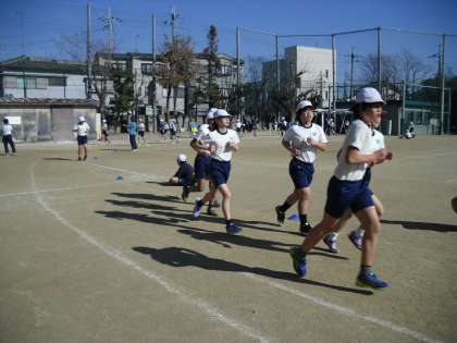 あさって(18日)のマラソン大会に向けて,体育で時間走をしています。2人組で前半・後半に分かれ,15分間ずつ走りました。速い子で約4km走ったと言っていました。みんな自分のペースで最後まで一生懸命走り続けていました。ペアの友だちの周回を数えながら,応援する子たちは「○○,がんばれ!」「いいペース!」など声をかけていました。とても気持ちのよい光景でした。