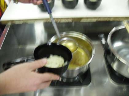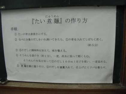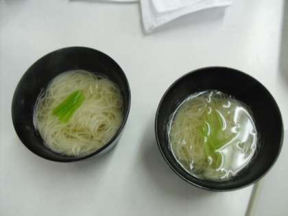 鯛にゅうめんの上には,みつばを乗せて完成。さあ食べましょう。