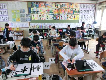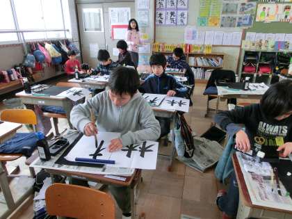 『木』が『きへん』になると,はばと点画の形は,どう変わるかを考えながら書きました。