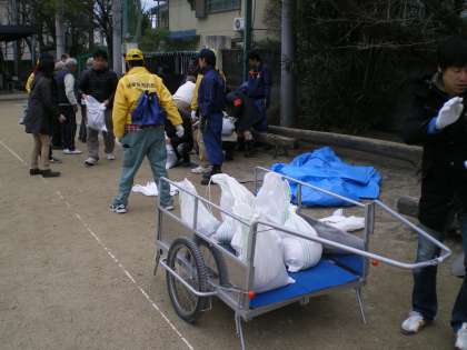 午後2時より,区役所の防災担当や地域の諸団体の方々の手際のよい準備や的確な支持の中,桂東学区の防災訓練が体育館で行われました。大勢の地域の方の参加がありました。
