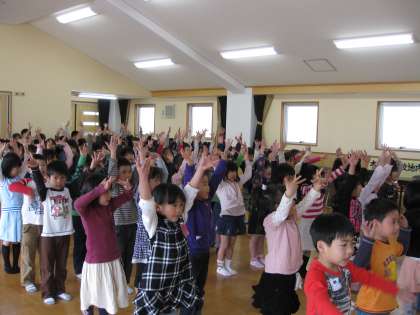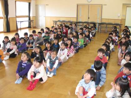 1年生は,お迎え集会でお兄さんやお姉さんが,どのような出し物をしてくれるのかドキドキワクワクしています。