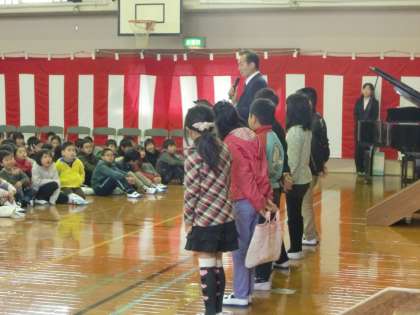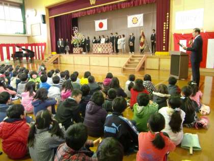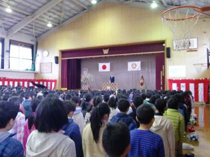 着任式に引き続き,平成27年度始業式を行いました。ひとつ学年の上がった子どもたちは,和田校長先生のお話をとても静かに聞いていました。その後の教職員紹介+担任発表のときは,どきどきわくわくした表情で明るく反応していた子どもたちでした。最後に,校長先生から,新しく桂東小学校に転校してきた6名のお友達の紹介がありました。