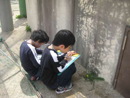 理科の学習で校内のしぜんたんけんをしました。校内には,いろいろな草花がさいているのを見つけました。