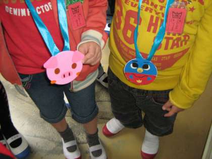 一人一人が工夫して作ったペンダント,1年生にとても喜んで