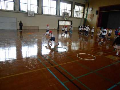 今日は体育館で「体ほぐしのうんどう」に取り組みました。