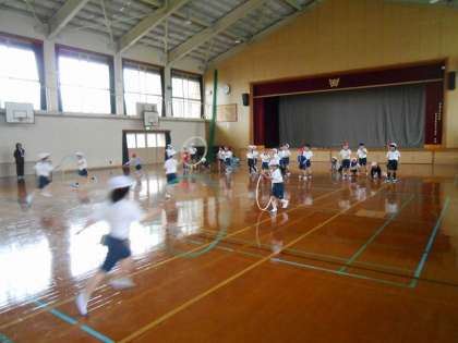 外はあいにくの雨模様でしたが,みんな思い切り運動できて気持ちよさそうでした。