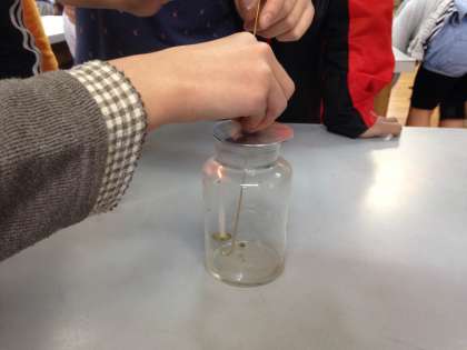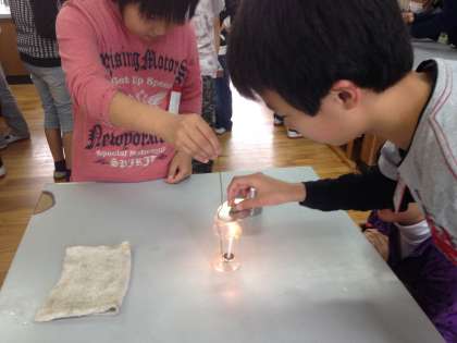 ふたをした容器にろうそくの火を入れると,火が消えてびっくり!
