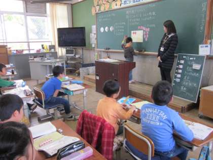 4年生は,国語で「漢字の組み立て」について学習をしました。クイズ形式の学習に子どもたちは引き込まれていました。