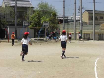 運動場で元気に遊ぶ子ども達の姿が見られます。