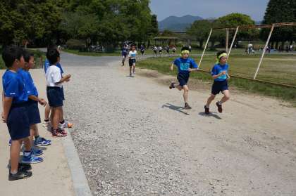 暖かいというよりは暑いくらいの天候になりましたが,4年生から6年生の子どもたちが記録に挑戦しました。
