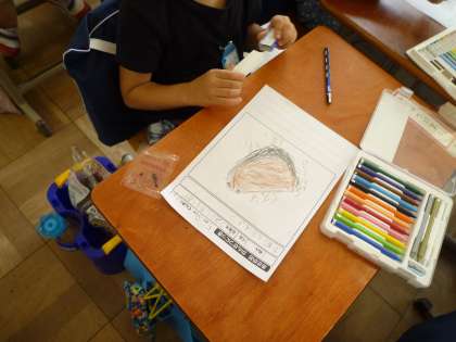 良く見て,色や形や大きさを観察します。「お月さま見たい。」「すいかみたい。」