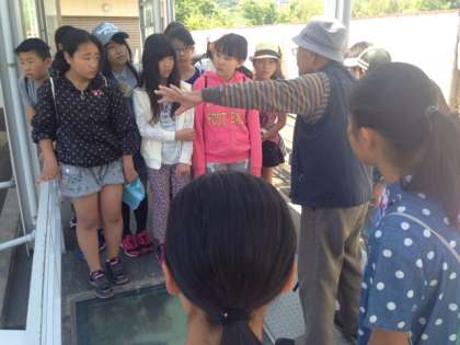 メモリアルハウスの中を見学する子どもたちの様子です。