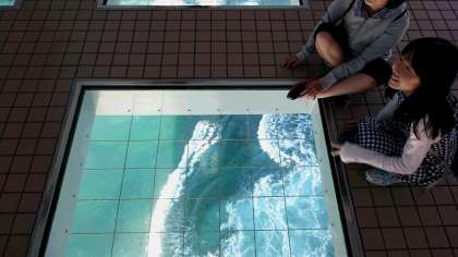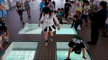 途中、下が透明なところでははじめは恐る恐るのぞいていました。