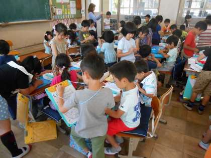 1年生と一緒に記念写真を撮ってもらいました。1年生がこれからの学習で使うそうです。