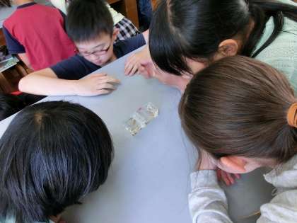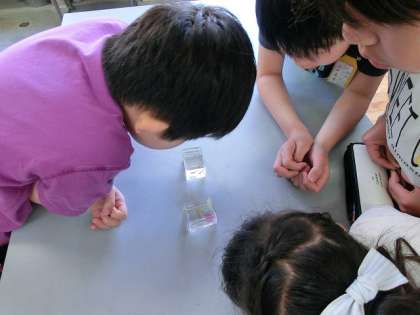 『生命のつながり』の学習でメダカの雄と雌を見分けました。