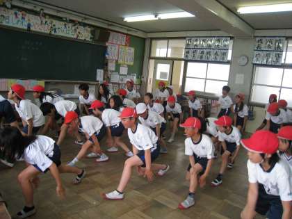 みんな,体をいっぱい使って汗をかきながら踊りを楽しんでいました。