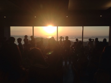 瀬戸大橋が見える綺麗な景色と夕日の中,