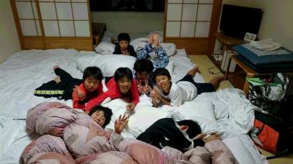 部屋に班で協力して布団をしきました。