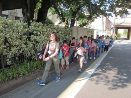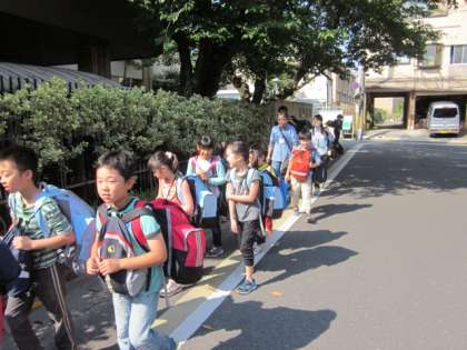 学校を出ていく子どもたちです。背中の荷物が重たそうですね。がんばれ!