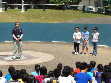 桂東の校歌とともに、旗が掲げられました。