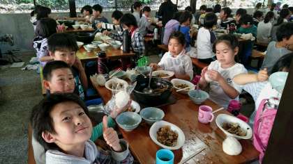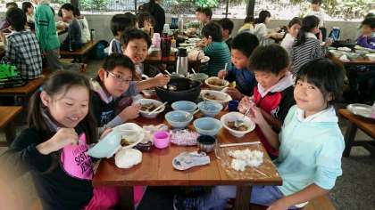 できた班から温かいうちに「いただきまぁ〜す!」