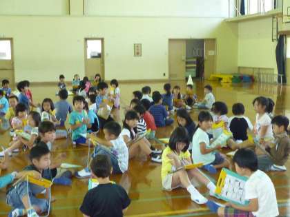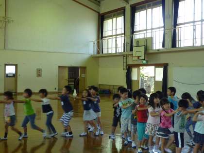 学年集会では,みんなでピアノに合わせて「貨物列車」の遊びをしました。最後には全員で一つの輪になることができて,素晴らしかったです。
