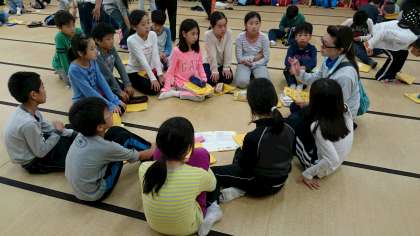 キャンプファイヤーも終わり,今日の振り返りの時間です。