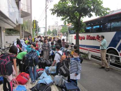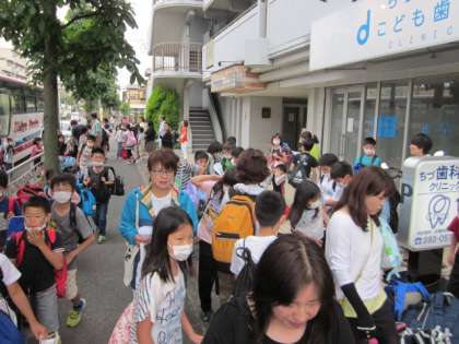 予定より少し遅れて,4年生の子どもたちが帰ってきました。みんな,疲れた感じでしたが,懐かしい風景の町に降り立って,ほっとしているようでした。お家に帰ってゆっくり体を休めてほしいと思います。お家の方にお土産話をいっぱいしてあげてください。(でも,それは明日でいいかな?)