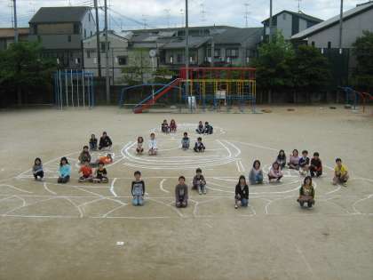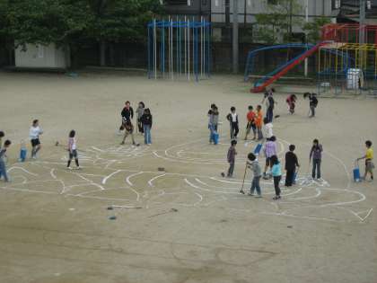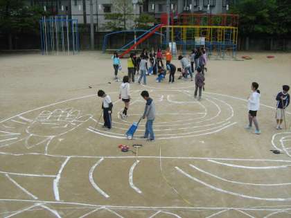 運動場に実物と同じ大きさの大仏をかきました。