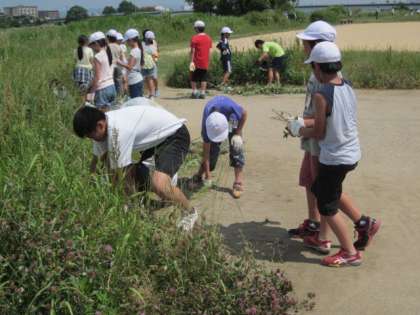 夏を思わせる暑い日差しの中,グリーンスクールを行いました。今回は5年生が,桂川に出向いて,地域やPTAの方々といっしょに清掃活動をしました。