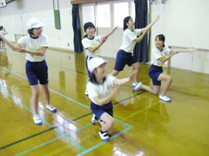 体育の授業ではグループに分かれてダンスを練習しています。自分たちで選曲した曲で踊ります。クラス発表・学年発表もあります。頑張っています!