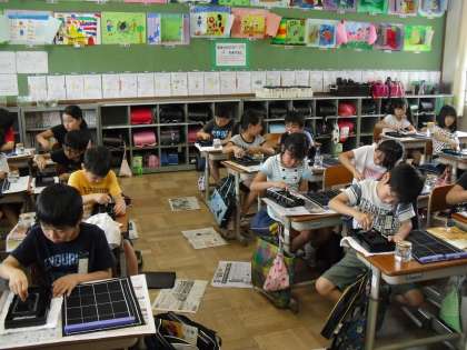 初めての書写の学習に,ドキドキわくわくの子どもたち。