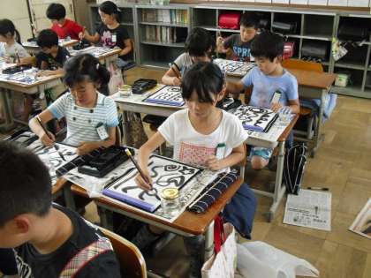 今日は墨をするところから始めました。思っていたより力がいるので,腕がつかれたようです。