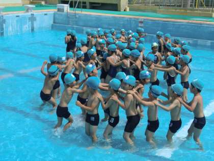 きょうは,はじめの小学校でのプールだったので,低水位のプールで水慣れを中心に授業をしました。