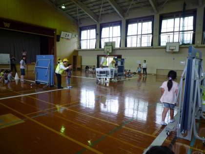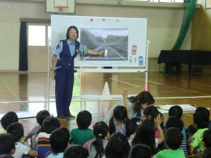 1年生は,安全な道路の渡り方について話を聞き,体育館を道路にみたて,安全な道路の渡り方について実際に動いてみて,学習しました。
