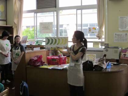 毎年,読み聞かせでお世話になっている「クローバーの会」の方々が中心となって,子どもたちにまず最初に絵本を読んでくださり,その後,工作を教えてくださったりしました。