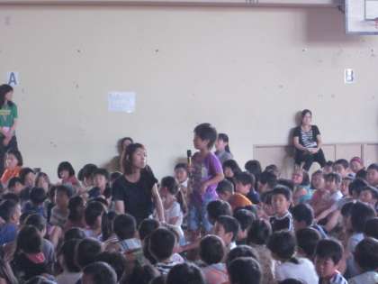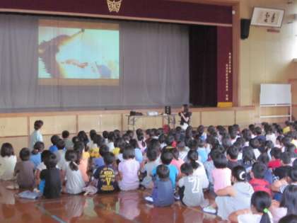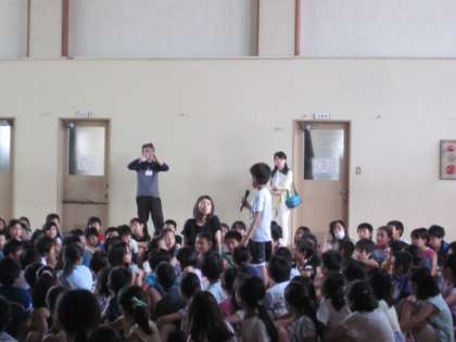 全校道徳の様子です。たくさんの子どもたちが手を挙げて発表していました。
