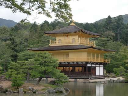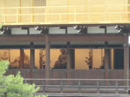 金閣寺の金色にみんな驚いていました。広い池にも驚いていました。観光客の多さにもびっくりでした。一層,二層,三層の違いがよくわかりました。