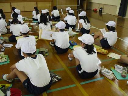 5年生は,スチューデントシティ学習を進めています。自分の就きたい仕事を考え,求職票を書きます。「どんな会社にしようかな。」「代表者に挑戦したいな。」先生の話を聞く子どもたちの姿も真剣でした。期待と緊張の混じった雰囲気でした。