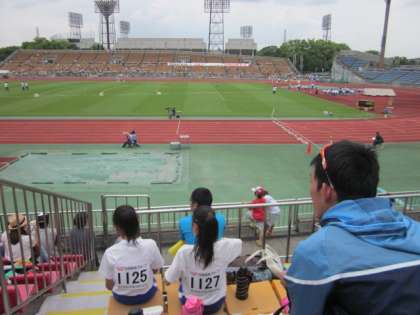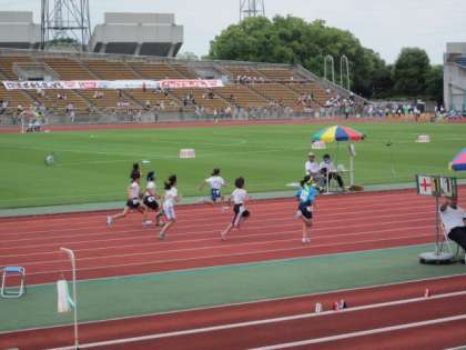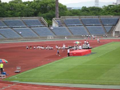 西京極陸上競技場において「全国小学生陸上交流会予選会」が行われました。時折日差しがさすものの,気持ちのいい空気の流れる競技場で,子どもたちは日頃の成果を出そうと頑張っていました。午後からもガンバレ!!