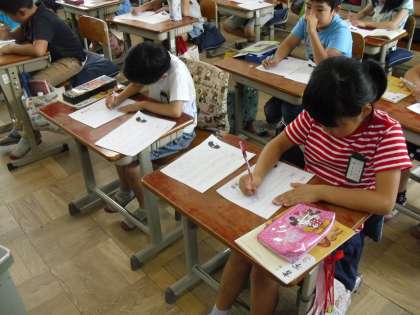 おしゃべりは一切せず,よい姿勢で書くことができました。