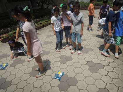 4年生では,理科の学習「電池のはたらき」のまとめで,光電池を使ったソーラーカーづくりをしました。光電池に日光を当てると速く走り,影を作ると止まったり遅くなったりすることを楽しんで体験していました。