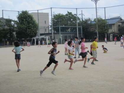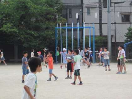 今日の中間休み『なかよし学年遊び』を行いました。ふだんあまり遊ぶことのない異学年の子どもたちでグループをつくり,上の学年の子がリーダーシップをとって集団あそびをしました。運動場いっぱいに広がって楽しそうに遊んでいました。