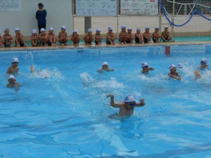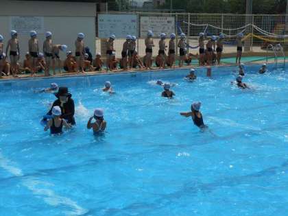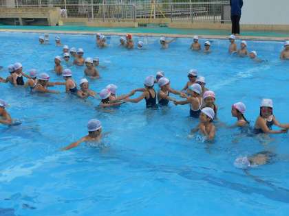 最後はバディの手を取って引っ張る「ひきふね」という泳ぎ方をしました。
