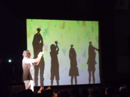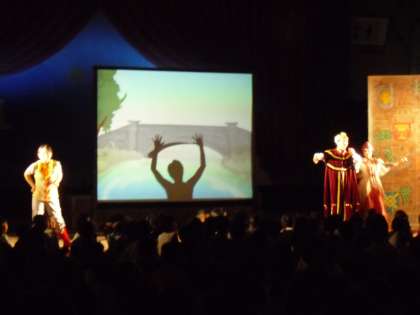 劇団かかし座の方々による,影絵「長靴をはいたねこ」を鑑賞しました。