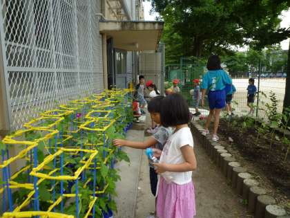 となりの人とつるがからんで,解くのが大変です。でも,こんなに大きくなるんだとびっくりしています。